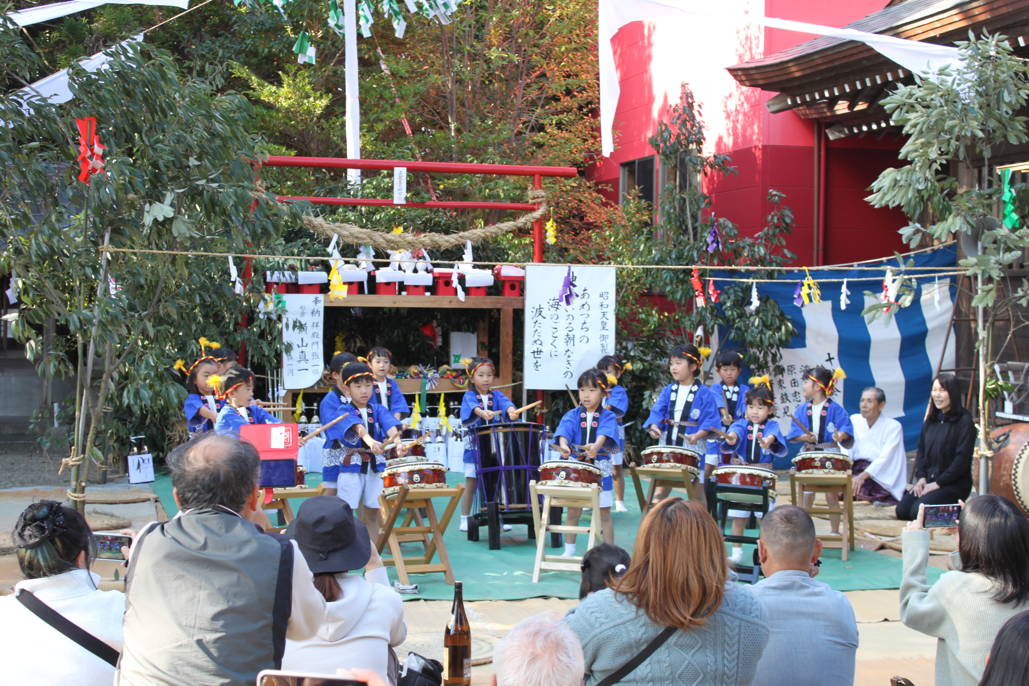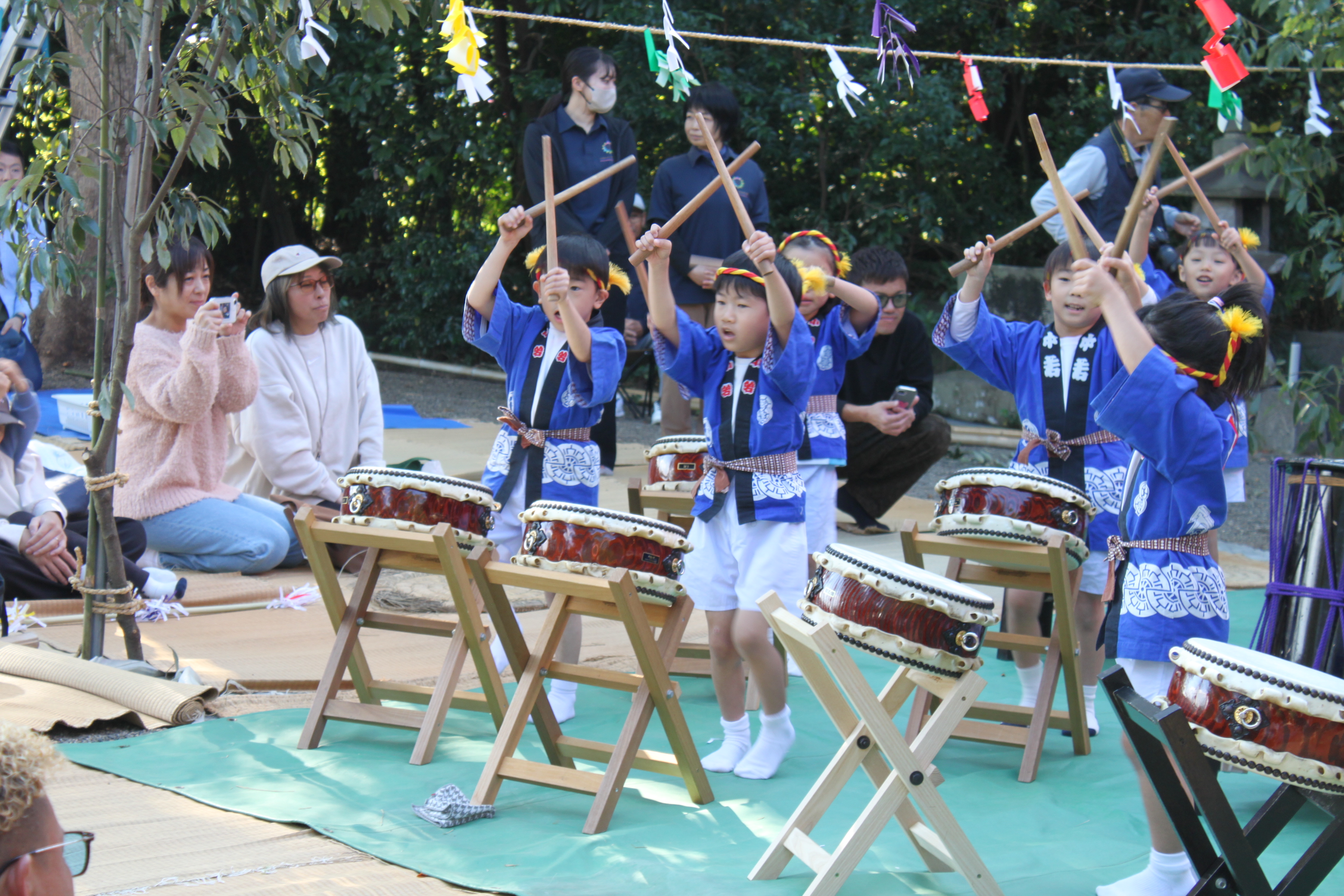 こども園横の岡冨住吉神社で和太鼓を奉納しました。