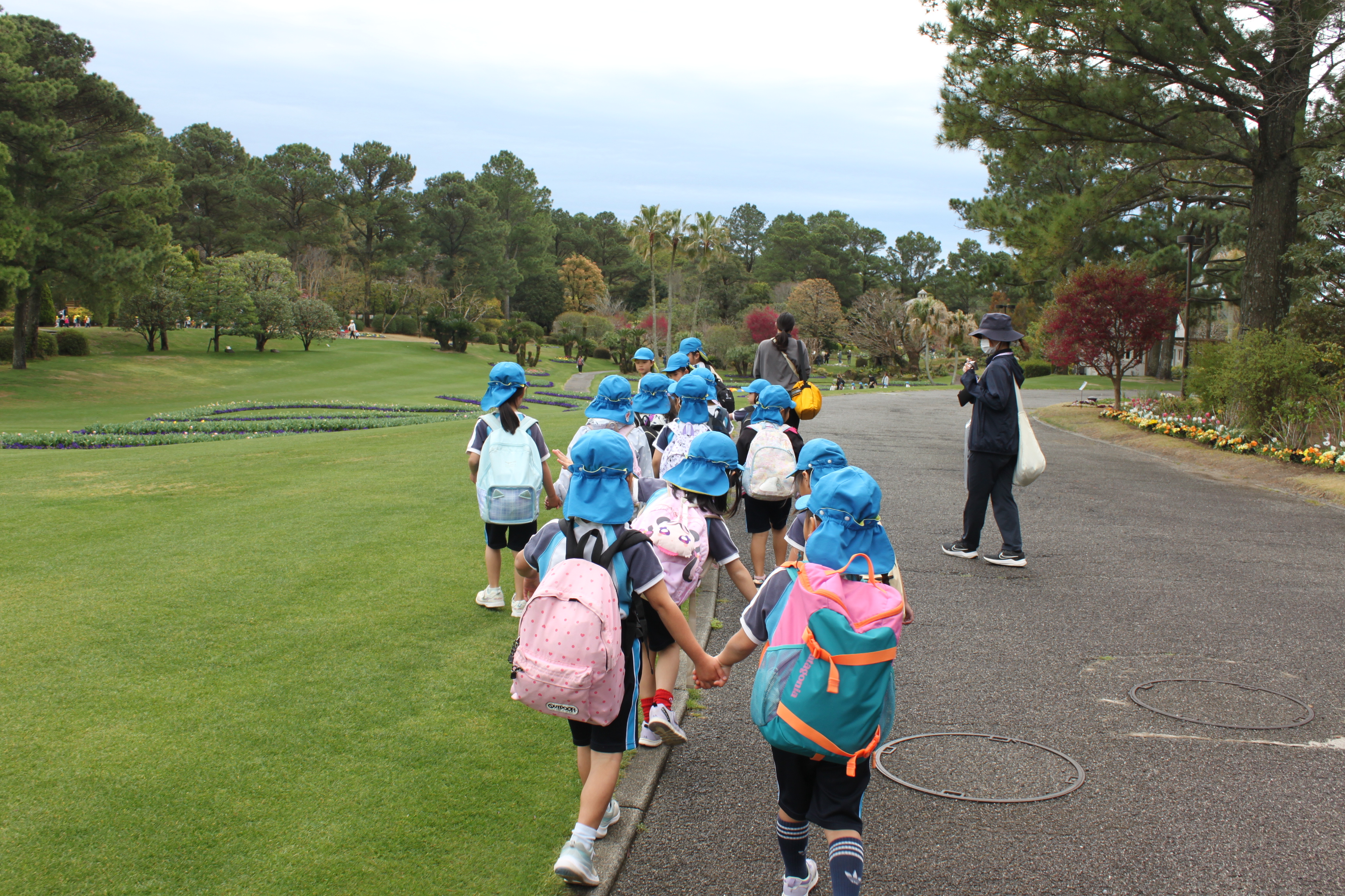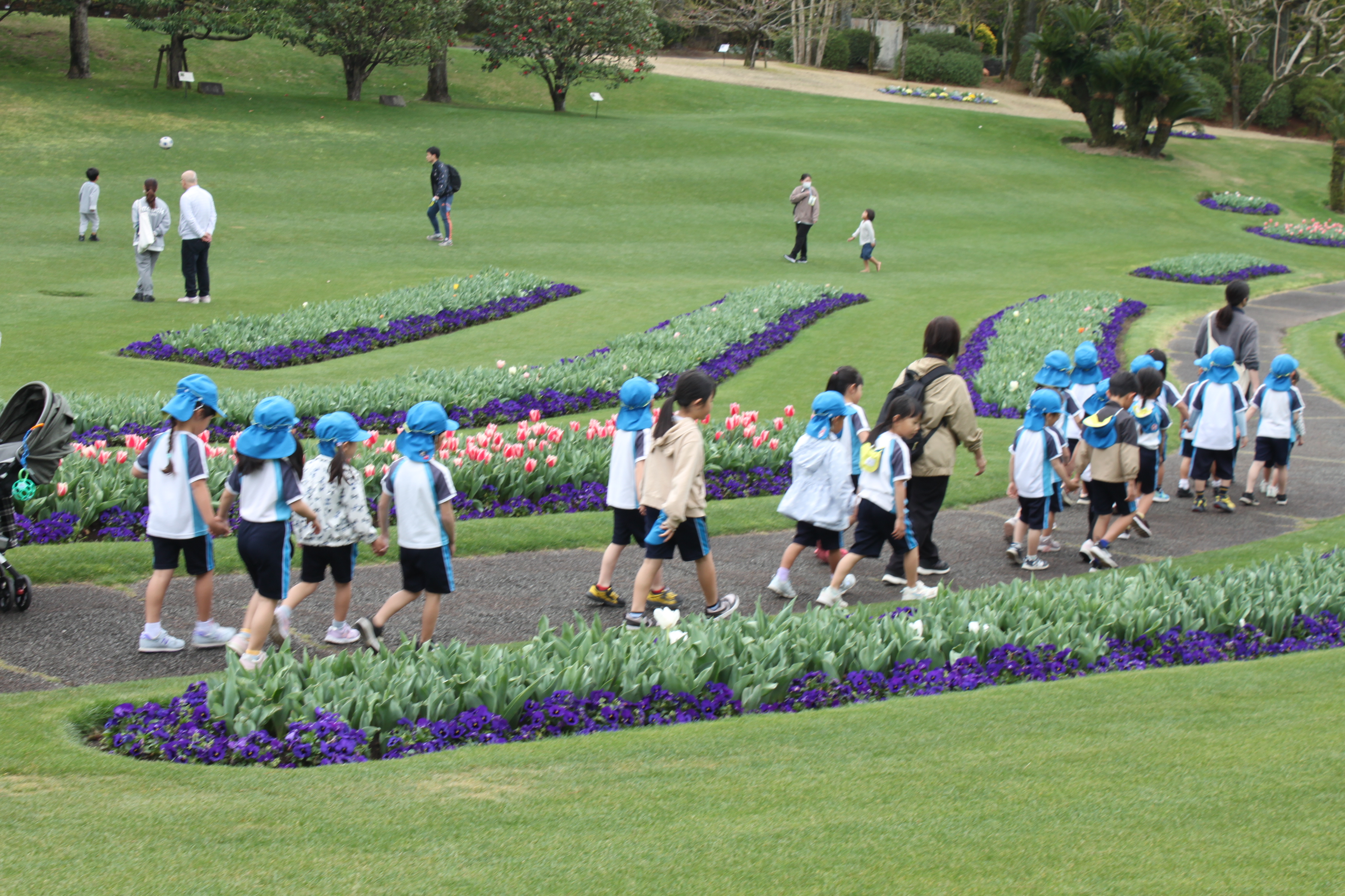 年長児と年中児でフローランテ宮崎へお別れ遠足に行きました。明け方はあいにくの雨でしたが、出発する頃にはお日様が顔を出し、たくさん咲いているチューリップやラナンキュラスを見たり、温室に入って普段見ない植物を見たりと、とても楽しく過ごしました。