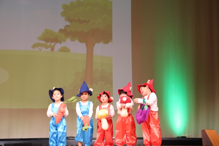 文化ホールで生活発表会が行われました。たいよう組の口上から始まり、劇、ダンス、舞踊、発表などを披露しました。中には、たくさんのお客様に圧倒され、力が発揮できなかったお友だちもいましたが、「楽しい」と言いながらのびのびと表現するお友だちもいました。